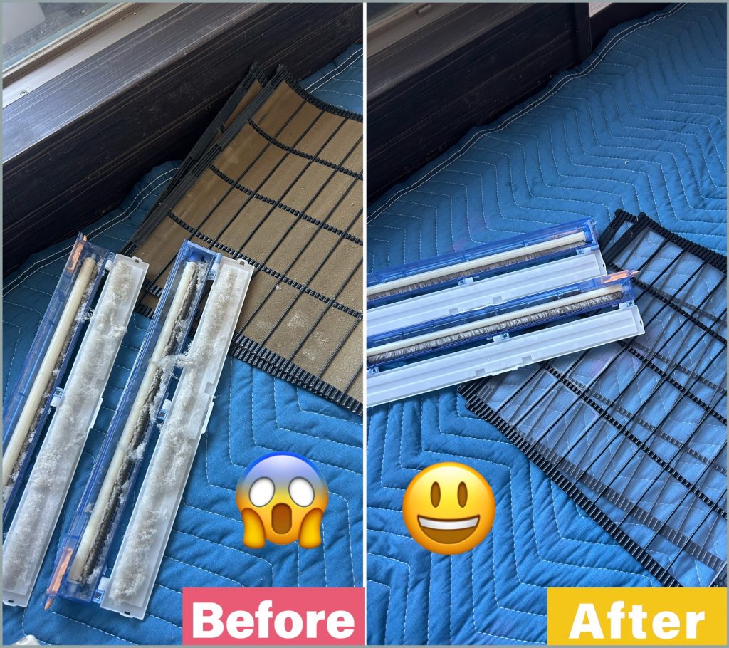こちらは三菱のお掃除機能付きエアコンのフィルターとダストBOXです!フィルターのほこり取りは自動で行ってくれていますが、定期的にご自身で外してのお手入れ必要です!